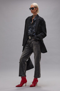 A twist on R13's classic boyfriend jean with a wider, slouchier leg built with rigid black 12.5 oz denim and a mildly worn wash. FIND YOUR SIZE > DETAILS Made in Italy Color: Polaris Black 100% Cotton R13WD211-D392A