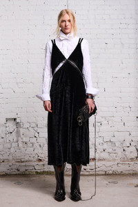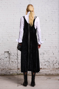 The grunge slip is a minimalist take on the classic slip dress, here tastefully accented by zippers at the chest and straps and a velvet construction. - Made in NYC - Color: Black Velvet - Sasha is 5’10” and wearing size M - Bust 32”; Waist 23”; Hips 35” - 72% Viscose 28% Silk - R13WR226-R304A