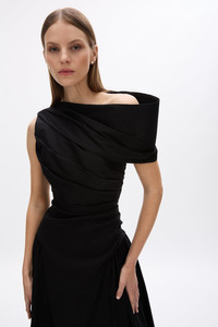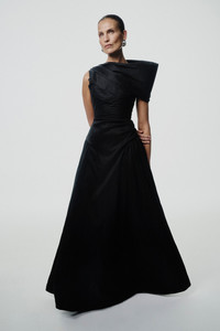 The elegant A-line Banksia gown features a cinched waist with an internal corset and waist tape for added support and a perfectly defined shape. The over-the-shoulder detail is designed to beautifully flatter the decolletage, adding a touch of sophistication. Falling to a floor-grazing, soft voluminous skirt, the gown is enhanced with symmetrical ruching on each hip, creating a flattering hourglass silhouette. Made from high-stretch, lightweight fabric, this gown offers ease of wear while maintaining its luxurious fit. A stunning choice for any refined occasion. Details & Fit Runs true to size, we recommend taking the size closest to your bust and waist measurement. Model is 5'10 and wears a RG 1 = US 4 = AU/UK 8. - Lightly boned internal bodice - Internal elastic waistband - Back zip - Structured drape around shoulders - High stretch Fabric & Care Frey Taffeta Main: 50% Polyester 45% Nylon 5% Elastane Lining: 100% Polyester Dry clean only See sewn in label for further care instructions