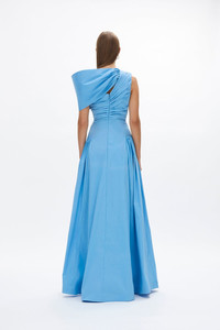 The elegant A-line Banksia gown features a cinched waist with an internal corset and waist tape for added support and a perfectly defined shape. The over-the-shoulder detail is designed to beautifully flatter the decolletage, adding a touch of sophistication. Falling to a floor-grazing, soft voluminous skirt, the gown is enhanced with symmetrical ruching on each hip, creating a flattering hourglass silhouette. Made from high-stretch, lightweight fabric, this gown offers ease of wear while maintaining its luxurious fit. A stunning choice for any refined occasion. Details & Fit Runs true to size, we recommend taking the size closest to your bust and waist measurement. Model is 5'10 and wears a RG 1 = US 4 = AU/UK 8. - Lightly boned internal bodice - Internal elastic waistband - Back zip - Structured drape around shoulders - High stretch Fabric & Care Frey Taffeta Main: 50% Polyester 45% Nylon 5% Elastane Lining: 100% Polyester Dry clean only See sewn in label for further care instructions