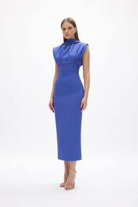 Details & Fit This is a fitted column silhouette Model is 5'10 and wears a RG 1 = US 4 = AU/UK 8 - Raised neckline. - Hand draped bust. - Constructed with an internal corset. - Back split. - Column Silhouette. Fabric & Care Lightweight twill 96% Recycled Polyester 4% Polyurethane Dry clean only.