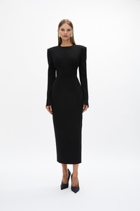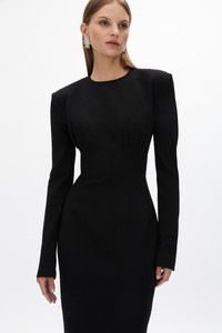 Details & Fit This style runs true to size, we recommend taking your waist measurement to indicate your size. This garment can be altered with ease. The length of the dress and sleeves can be tailored by a professional seamstress.Model is 5'9 and wears a RG 1 = US 4 = AU/UK 8. Heel height is 11 cm. - Textured fabrication. - Bodice gathers at under bust seam - Waist panel with fully boned corset - Shaped design lines / panel seams over hip to create flattering lines over body - Elasticated waist tape - invisible zip at centre back - Stretch lining - Shoulder pads - Bias cut sleeves - Split at centre back skirt Fabric & Care Stretch Crepe Main: 98% Polyester 2% Spandex Lining: 100% Polyester Dry clean only See sewn in label for further care instructions