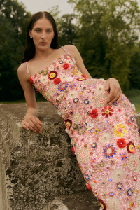 An all glamour silhouette, saturated in signature Rachel Gilbert heavy beading cut to a figure flattering shape with dainty straps. Details & Fit Runs true to size, we recommend taking your usual size. Model is 5'10 and wears a RG 1 = US 4 = AU/UK 8. - Hand beaded embellishments - Square neckline - Midi length - Fitted silhouette - Some stretch in fabric - Back split - Invisible zip - Adjustable spaghetti straps Fabric & Care Embellished Tulle Main: 100% Nylon Tulle Lining: 100% Nylon Dry clean only See sewn in label for further care instructions