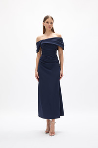 Details & Fit This is a a-line silhouette. Model is 5'10 and wears a RG 1 = US 4 = AU/UK 8 • Strapless silhouette. • Hand draped bust and waist detail. • Zip Closure. • Designed to sit slighly off the hip. • Stretch through hips. • Little stretch through bust. Fabric & Care Stretch paper taffeta 88% Polyamide 12% Elastane Dry Clean Only