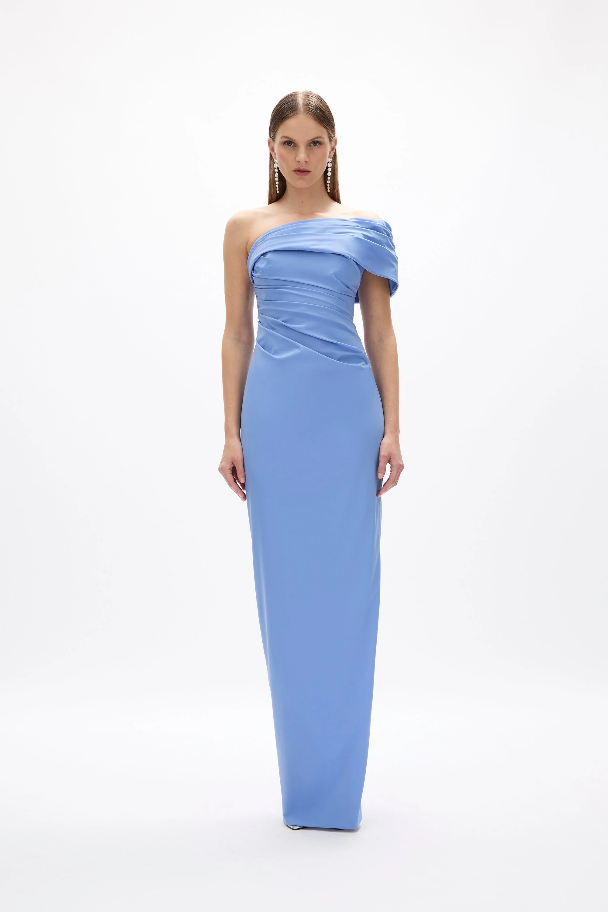 Details & Fit A fitted column silhouette, the Gale Gown is structured with an internal bodice and waist corset to enhance shape while providing subtle support. The bust and waist have minimal stretch, while the hips allow gentle give for comfort and movement.We recommend using your bust, waist, and hip measurements to select the size that most closely matches our size chart.Model is 5′10″ and wears size RG 1 / US 4 / AU 8 - Form-fitting column silhouette - Off-the-shoulder neckline - Hand-draped bust and waist - Internal bodice - Internal waist tape - Side split Fabric & Care Fabrication: Stretch Paper Taffeta, 88% Polyamide, 12% Elastane Care: Dry Clean Only The Gale Gown is crafted from luxurious stretch paper taffeta, a smooth and structured fabric with a subtle sheen and crisp hand. The tightly woven construction provides sculptural definition while the added stretch allows the gown to move gracefully with the body, enhancing comfort across the hips without compromising its tailored silhouette. The fabric’s elegant finish, characteristic rustle, and natural texture lend refinement and sophistication. To preserve the structure and hand-draped detailing, store in a garment bag and hang using internal support loops to maintain shape and protect the silhouette.
