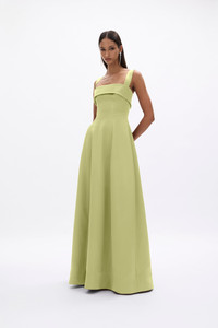 Details & Fit This style is true to size; we recommend using your bust, waist, and hip measurements to select the size that most closely matches our size chart.Model is 5'8 and wears size RG 0 / AU 6 - Full-length silhouette - Square neckline - Internal corset and waist tape - Hand-draped detail across the bust - Back zip closure Fabric & Care Fabrication: Fabrication: Stretch Taffeta - 88% Polyamide, 12% Elastane Care: Dry Clean Only Crafted from Stretch Taffeta, the Halle Strap Gown provides a structured yet fluid finish that highlights the hand-draped bust detailing and supports the full-length silhouette. The slight stretch allows ease of movement while maintaining a polished, tailored finish.