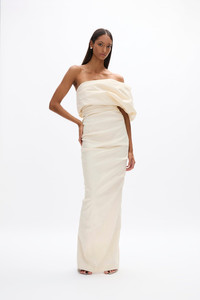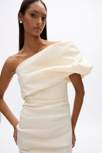 A modern adaptation of a one-shoulder gown, the Kat Gown features a voluminous, relaxed one-shoulder silhouette balanced by an internally structured fitted waistline to define shape. This silhouette balances paired-back exaggeration with a timeless approach by offering a quintessential event piece we will never fail to reach for. - Fitted bodice with internal boning - A slim fit silhouette - This fabric has stretch - Adjustable elastic waist tape to cinch in the waist - Silicone taping on the inside of the bust for a firm hold on the body - Elastic is stitched in to the sleeve for a close fit - This style can be hemmed - This style fits true to size Size and Fit Runs true to size, we recommend taking your usual size. Model is 5'10 and wears a Rachel Gilbert Size 1 [AU/UK 8 | US 4] Fabrication Stretch Taffeta 45% Nylon 50% Polyester 5% Elastane Care Dry Clean Only See sewn in label for further care instructions