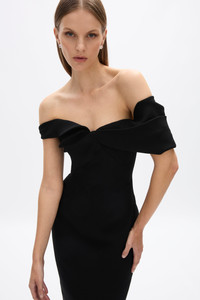 A classic silhouette crafted with a soft sweetheart neckline and off-the-shoulder straps falling to a full length silhouette. Detailed with signature Rachel Gilbert craftsmanship with internal corsetry to create waist definition and create a soft hour-glass shape. Size and Fit Runs true to size, we recommend taking your usual size. Model is 5'9 and wears a Rachel Gilbert Size 1 [AU/UK 8 | US 4]. - Fitted silhouetted - Maxi length - Off the shoulder - Fully boned - Adjustable elastic waist tape to cinch in the waist - Silicone taping on the inside of the bust for a firm hold on the body - Invisible back zip Fabrication Stretch Crepe Main: 71% Acetate 29% Polyester Lining: 100% Polyester Care Dry Clean Only See sewn in label for further care instructions
