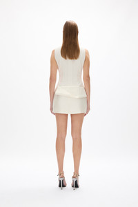 Details & Fit Model is 5'10 and wears a RG 1 = US 4 = AU/UK 8. Heel height is 12cm. This style runs true to size, we recommend taking your waist and hip measurement to indicate your size. The length of this garment can be tailored with ease by a professional seamstress. Please note that the contrast panel has no stretch in circumference. - Figure skimming fit - Elasticated waist tape - Hidden zip at centre back - Contrast non stretch silk wool panel at low hip - Drape sash around contrast panel - Fitted through the hip. - Contrast tulle v shaped insert at under arm Fabric & Care Stretch Crepe & Silk Wool Main: 95% Polyester 5% Elastane Contrast: 52% Wool 48% Silk Lining: 100% Polyester Dry clean only See sewn in label for further care instructions