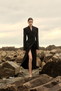 Details & Fit This style runs true to size, we recommend taking your waist measurement to indicate your size. If you are in between sizes, we recommend sizing up. This garment can be altered with ease. The coat length and sleeve can be easily tailored by a professional seamstress. Model is 5'10 and wears a RG 1 = US 4 = AU/UK 8. Heel height is 9cm. - Acetate blend twill suiting fabric - Structured shoulder pads - Contoured seams create waist shaping - Faux welt pocket at wearers left front chest - Functional jett pockets at low hip - Tortoise shell effect buttons visible at front with 1 concealed button on inside wrap - Rachel Gilbert branded chain at inside back neckline - Functional vent at back of 2 piece sleeve with 4 stacked functional buttons - Vent at centre back hem - Elongated knuckle length sleeve Fabric & Care Suiting Main: 12.5% Acetate 87.5% Polyester Lining: 100% Polyester Dry clean only See sewn in label for further care instructions