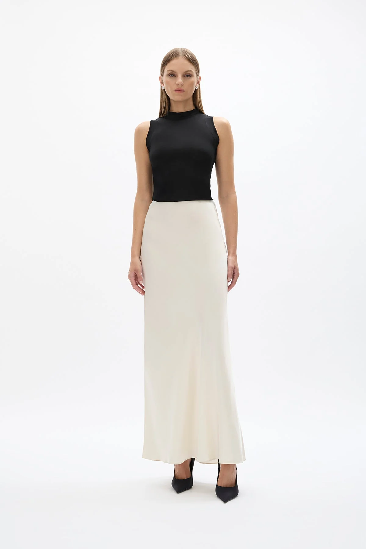A full-length skirt cut on the bias, featuring a back zip closure. A timeless staple for any wardrobe. - This is a slim relaxed fitting silhouette - No stretch fabric - Semi sheer - This features a fixed waistband - This silhouette runs true to size - We recommend taking your waist measurements in to consideration when selecting your size Size and Fit Runs true to size, we recommend taking your usual size. Model is 5'9 and wears a Rachel Gilbert Size 1 [AU/UK 8 | US 4] Fabrication Silk Satin 100% Silk Care Dry Clean Only See sewn in label for further care instructions