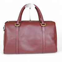 Vintage CARTIER 1980s Boston Bag Leather Bordeaux