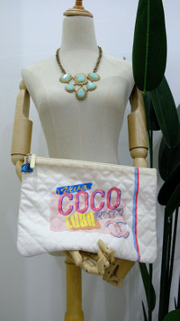 It’s made of quilted white canvas fabric with vibrant, pastel-colored viva coco cube logo on the front Front face. This slim-line piece has a silver tone zippered top with a logo pull and no pocket inside . Have sings of use and some stain on the body as u can see on picture . Please look at every detail of the photo Size : Length : 10.6 in High : 7.4 in 👉In good condition 👉Don't expect the iteam arrived like new/pristine condition 👉Please contact us for any questions. 👉Please add your phone number on your order to avoid delays ZOOM PHOTO for any detail and flaws there may be and read them carefully 🔥No cancellation allowed after made the payment. 🔥Pls read all the description before buying. 🔥Buyer will be responsible for paying customs duties and taxes. We are not in charge or in control over those charges as customs policies vary by country. If you have any questions related to customs charges, We kindly ask you to contact your local customs office. We guarantee satisfaction and authenticity. Please contact us for any questions. Thanks you very much for watching my item.. ✨Thank you 🧡