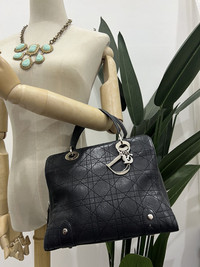 This is an authentic CHRISTIAN DIOR Calfskin Cannage Tote in Black. This stylish handbag is created out of soft leather with a decorative geometric stitch. The bag features a leather top handles and polished silver hardware including Dior logo charms. The top zips open to a black Dior logo jacquard fabric interior with zipper and patch pockets. This item has been used and may have some defects, especially on the handle. and no key for the padlock. Before buying, please refer to the picture for the actual condition of the item. Size : Length : 9.5in High : 8in Depth : 5 in 👉In good condition 👉Don't expect the iteam arrived like new/pristine condition 👉Please contact us for any questions. 👉Please add your phone number on your order to avoid delays ZOOM PHOTO for any detail and flaws there may be and read them carefully 🔥No cancellation allowed after made the payment. 🔥Pls read all the description before buying. 🔥Buyer will be responsible for paying customs duties and taxes. We are not in charge or in control over those charges as customs policies vary by country. If you have any questions related to customs charges, We kindly ask you to contact your local customs office. We guarantee satisfaction and authenticity. Please contact us for any questions. Thanks you very much for watching my item.. ✨Thank you 🧡