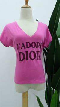 This pink top features "J'adore Dior" written in maroon text. V neck short sleeve design The back says " world champion 1947 " In good used vintage condition as always please view photos before purchase ❤️DETIALS❤️ 💘Brand : Christian Dior 💘Material : 100% cotton 💘Made in Italy 💥Saiz : Armpit to armpit : 50cm Length : 56cm Shoulder : 45cm 👉In good condition 👉 Don't expect the iteam arrived like new 👉Please contact us for any questions. 👉Please add your phone number on your order to avoid delays ZOOM PHOTO for any detail and flaws there may be and read them carefully 🔥No cancellation allowed after made the payment. 🔥Pls read all the description before buying. 🔥Item is stored in a dust-free, smoke-free, and hygienic environment. We guarantee satisfaction and authenticity. Please contact us for any questions. Thanks you very much for watching my item.. ✨Thank you