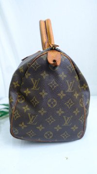 Features monogram coated canvas, two leathers handle, top zip closure,brown textile interior lining with slip pocket. Code : 852SA made in France 1982 condition-speedy 30 with some scuffs and stains on the leather part, the handles are solid at the base and firm. The zipper work properly, the hardware is tarnished, patina coloring, the body is clean and good condition, normal aging of the leather, missing leather puller,still easy to pull. Please look at every detail of the photo Size : Length :12 .5in High : 7.75in Depth : 6.75 in 👉In good condition 👉Don't expect the iteam arrived like new/pristine condition 👉Please contact us for any questions. 👉Please add your phone number on your order to avoid delays ZOOM PHOTO for any detail and flaws there may be and read them carefully 🔥No cancellation allowed after made the payment. 🔥Pls read all the description before buying. 🔥Buyer will be responsible for paying customs duties and taxes. We are not in charge or in control over those charges as customs policies vary by country. If you have any questions related to customs charges, We kindly ask you to contact your local customs office. We guarantee satisfaction and authenticity. Please contact us for any questions. Thanks you very much for watching my item.. ✨Thank you 🧡