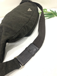 Charcoal grey wool Prada waist bag with silver-tone hardware, single flat waist strap, single Exterior zip compartment, single Exterior zip pocket, brown monogram jacquard lining, single zip pocket at interior wall and closure. Missing one ziper puller Size : Width : 11" Depth. :11" High : 8" Strap length : 30" 👉In good condition 👉Don't expect the iteam arrived like new/pristine condition 👉Not for fussy buyers 👉Please contact us for any questions. 👉offer me your best price 👉Please add your phone number on your order to avoid delays ZOOM PHOTO for any detail and flaws there may be and read them carefully 🔥No cancellation allowed after made the payment. 🔥Pls read all the description before buying. 🔥Item is stored in a dust-free, smoke-free, and hygienic environment. We guarantee satisfaction and authenticity. Please contact us for any questions. Thanks you very much for watching my item.. ✨Thank you 🧡