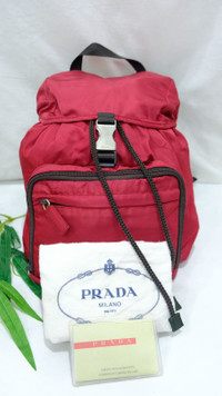Small Prada backpack red Nylone. MADE IN Italy Size : Width : 9.5 in / 24cm Depth :4.5in / 12cm High : 8.5in / 22cm 👉 Minor wear mark 👉 Some have faded colors on black fabric 👉Please contact us for any questions. 👉Please add your phone number on your order to avoid delays ZOOM PHOTO for any detail and flaws there may be and read them carefully 🔥No cancellation allowed after made the payment. 🔥Pls read all the description before buying. 🔥Item is stored in a dust-free, smoke-free, and hygienic environment. We guarantee satisfaction and authenticity. 🔥Buyer will be responsible for paying customs duties and taxes. We are not in charge or in control over those charges as customs policies vary by country. If you have any questions related to customs charges, We kindly ask you to contact your local customs office. Please contact us for any questions. Thanks you very much for watching my item.. ✨Thank you 🧡