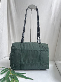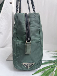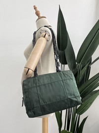 This shoulder bag features a green nylon body, plastic chain straps, an open top, and interior zip pocket . There are traces of re-stitching on the lining of the bag.This iteam has been used and may have some minor flows. Before purchasing, please refer to the images for the exact condition of the item. Size : Length : 8 in High : 11 in Depth : 2.75 in 👉Don't expect the iteam arrived like new/pristine condition 👉Please contact us for any questions. 👉Please add your phone number on your order to avoid delays ZOOM PHOTO for any detail and flaws there may be and read them carefully 🔥No cancellation allowed after made the payment. 🔥Pls read all the description before buying. 🔥Buyer will be responsible for paying customs duties and taxes. We are not in charge or in control over those charges as customs policies vary by country. If you have any questions related to customs charges, We kindly ask you to contact your local customs office. We guarantee satisfaction and authenticity. Please contact us for any questions.