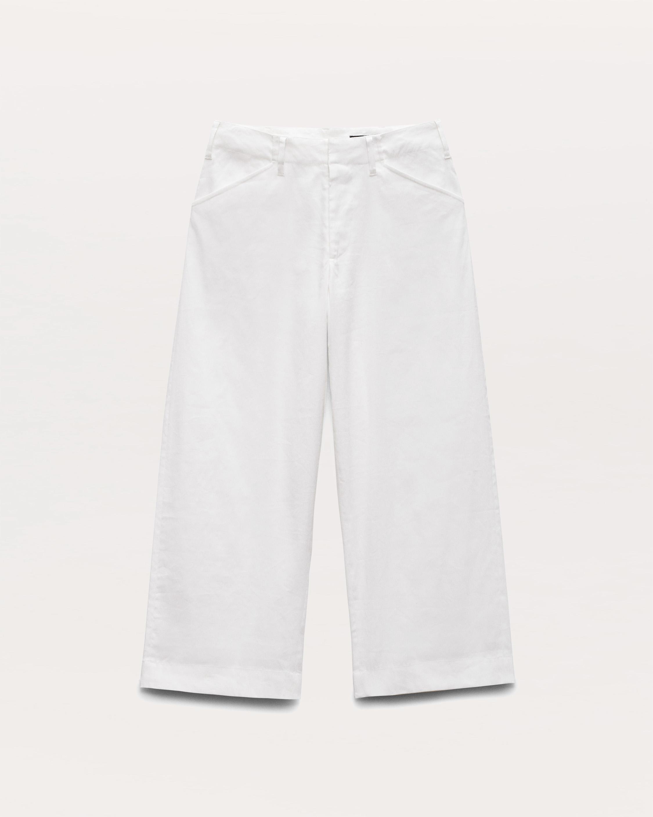 These mid-rise, wide-leg pants are tailored from an airy linen blend to the perfect ankle-baring length. Finished with front slant pockets and a hidden hook-and-bar closure, they strike a balance between elevated and effortless that's just right for warmer weather. Size & Fit Wide leg fit Size 4: 11 1/8" front rise, 26" inseam, 21" leg opening Model is 5'10.5" wearing size 2 Features & Details 52% Linen, 46% Viscose, 2% Spandex Lining: 97% Rayon, 3% Spandex Dry clean only Zip fly with hook-and-bar closure Slant pockets Imported Product ID: WAW25S70157515