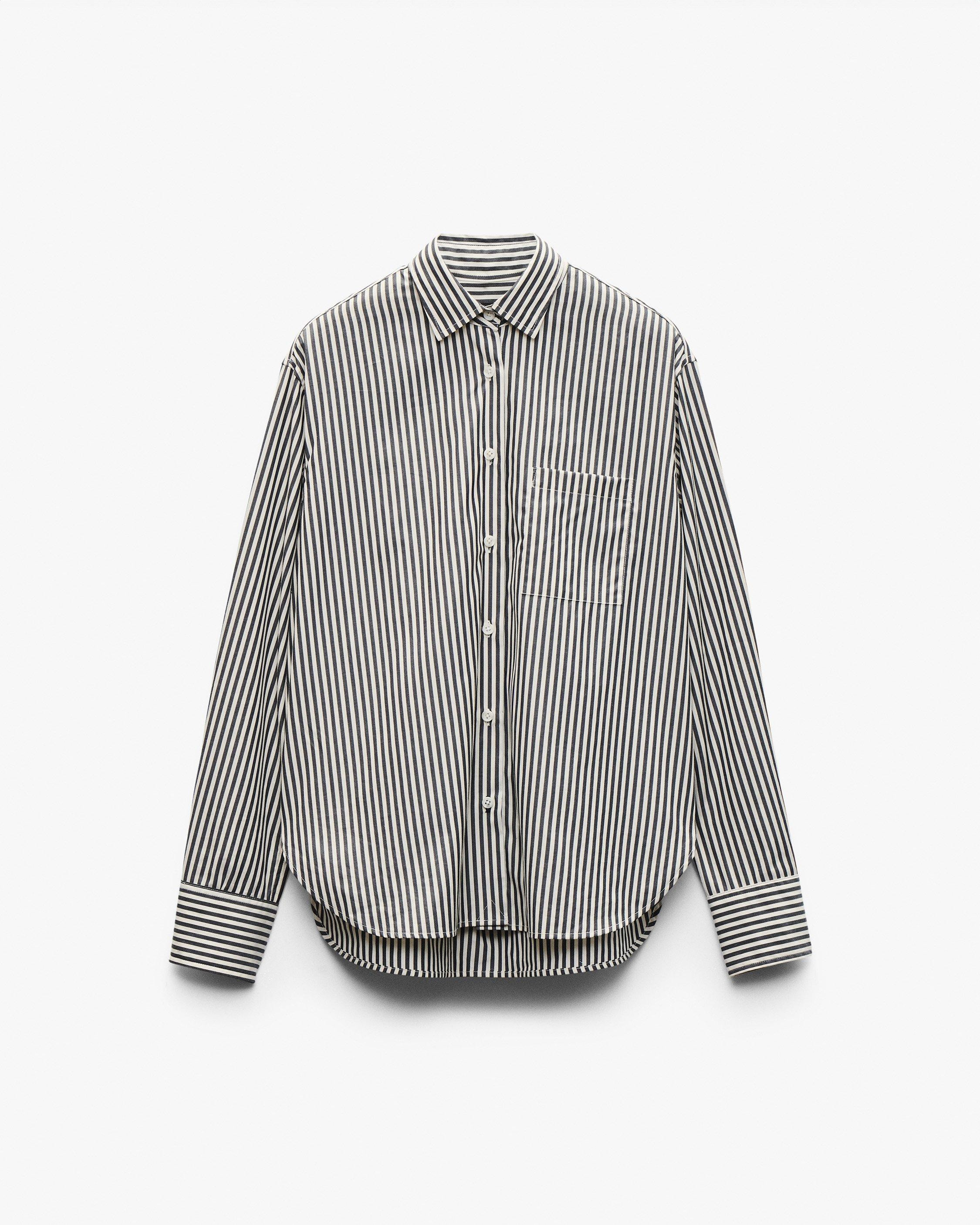 The quintessential striped shirt. Made better. Cut from airy, lightweight cotton poplin with a relaxed silhouette that works in every outfit. Looks perfectly undone by itself. Dressed up tucked in and layered. No wrong moves. Size & Fit • Relaxed fit • Fits true to size • Size small: Back length 27", chest 43.25", sweep 42.5", sleeve length 32.75" • Model is 5'9" wearing size small Features & Details • 100% cotton • Machine wash warm & tumble dry medium • Embroidered rag & bone logo at cuff • Contrast thread color at bottom buttonhole • Unlined • Chest patch pocket • Imported Product ID: RA2M25FSMCO