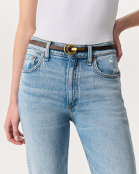 This super-slim belt is crafted in England from Italian-milled leather. Fine-tune its fit exactly as you wish by pulling one end of the strap through the two rings (which are cast in smooth and embossed metal for a touch of texture). It's an everyday essential that belongs in any well-rounded wardrobe. Size & Fit Width: 0.4" Length: XS 37.4", S 39.4", M 43.3", L 47.1" Features & Details 100% Cow Leather Professional leather cleaner Double ring hardware and closure Made in England Product ID: WJW25SB1048LE48