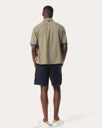 Our favorite button-up shirt. Cut with a classic, laid-back fit and straight hem perfect for any outfit. This short-sleeve version is crafted from two different fabrics in a unique patchwork construction. It's garment-dyed to create a beautiful depth of color with subtle nuances enhanced by the shifts in texture across the garment. Size & Fit • Classic fit • Fits true to size • Size Medium: Back length 27.5", chest 46.5", sleeve length 20.25" • Model is 6'3" wearing size medium Features & Details • 63% cotton, 37% lyocell • Machine wash cold on delicate & lay flat to dry or dry clean • Do not twist or wring • Distressed buttons at center front • Button closure • Imported Product ID: MBW25PA012PCML