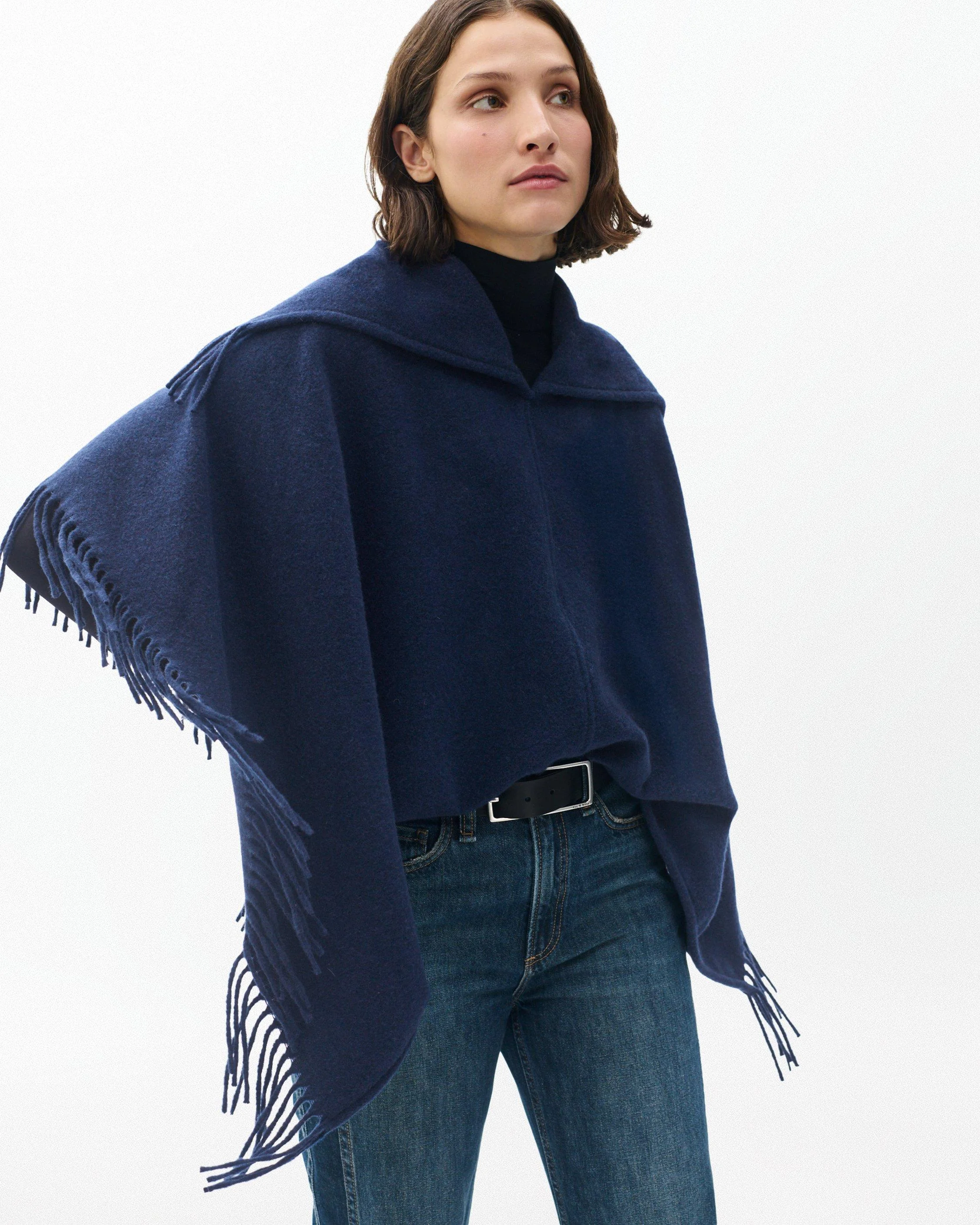 Wrap it up. Crafted in Italy from 100% wool, this assymetric poncho has a soft drape with an easy cowl neck and fringed edges. Wear yours over leather for contrast or lived-in denim on the weekends. Size & Fit • Dimensions: 130 cm x 145 cm Features & Details • 100% wool • Leather logo label • Dry clean • Made in Italy Product ID: RL3425HX24W