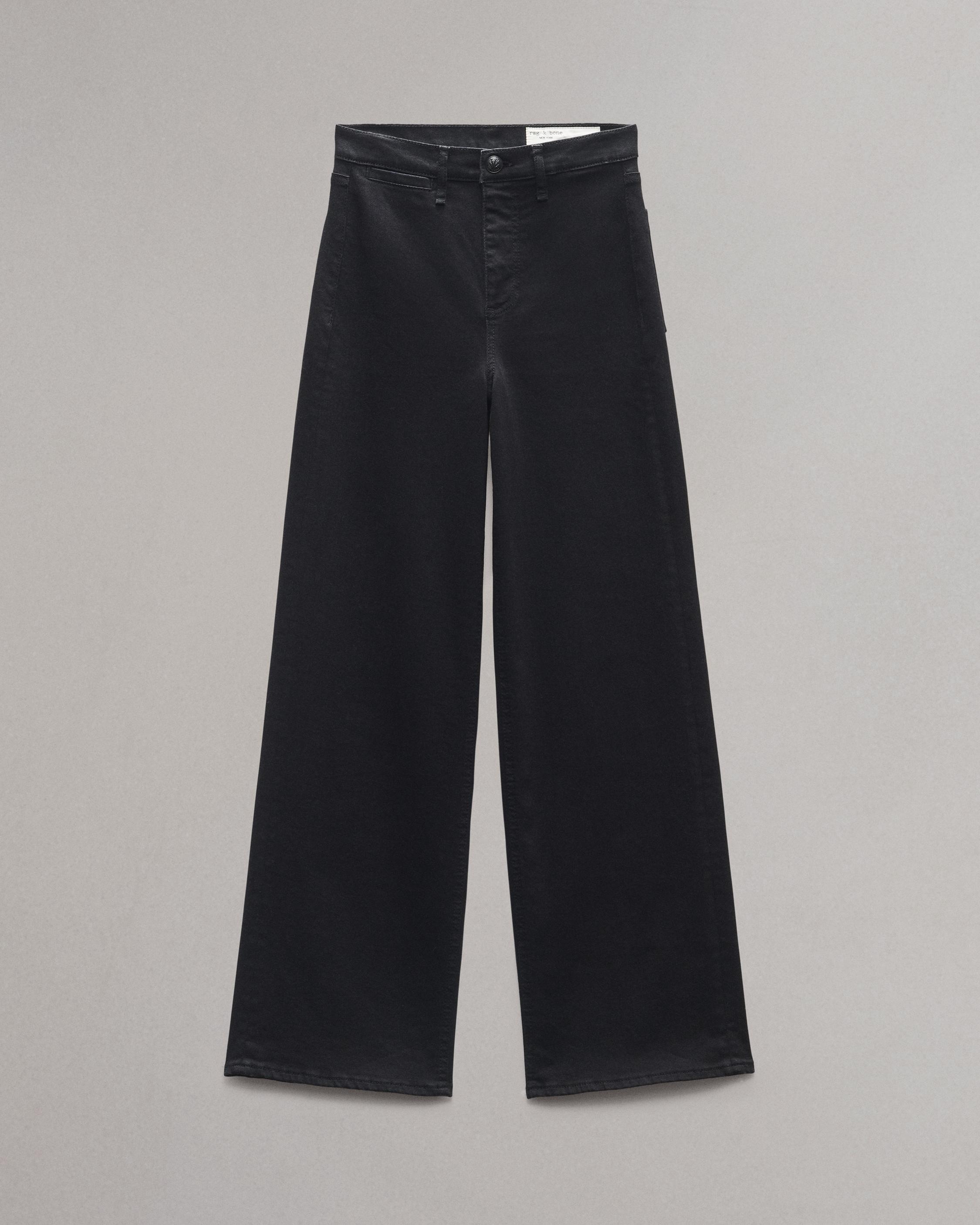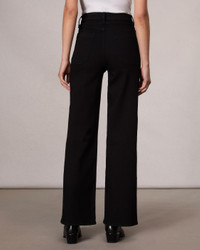The Hadley. Our new high-rise, figure-flattering jeans with sculpted legs that gradually widen. Crafted from our all-new Epic denim that's our most stretchy yet, for ultimate flexibility and comfort wherever life takes you. (Pro tip: Size down if you're between sizes.) In pure Black. Size & Fit Mid-rise, wide leg, full length Size 26 : 11 1/2" Front Rise, 32" Inseam, 22" Leg Opening Model is 5'10" wearing a size 25 Features & Details 92% Cotton 6% Lyrca 2% Lyocell Epic, Black Machine wash cold inside out with like colors, gentle cycle, do not use bleach, hang to dry, low iron if need, color may transfer Signature dagger shank button at center front with a zipper fly, metal rivets, clean hem Center front shank button and zip closure Back pockets Imported Product ID: WDD24H3002EPBL