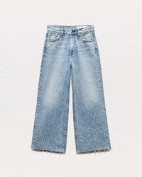 The Andi. High-waist jeans with wide, cropped legs and a cut hem that hits at the ankle. Crafted from our Featherweight denim that's supremely soft and super light, with an easy drape. In Beacon, a light indigo wash. Size & Fit High-rise, wide leg, ankle length Size 26: 12" front rise, 27" inseam, 21 3/4" leg opening Model is 5'10.5 wearing size 25 Features & Details 64% Cotton, 36% Lyocell Featherweight Denim in Beacon, a light indigo wash. Machine wash cold inside out with like colors, gentle cycle, do not use bleach, hang to dry, low iron if need, color may transfer. Zip fly with signature dagger button closure and metal rivets Five-pocket silhouette Imported Product ID: WDD25S2914FWBC