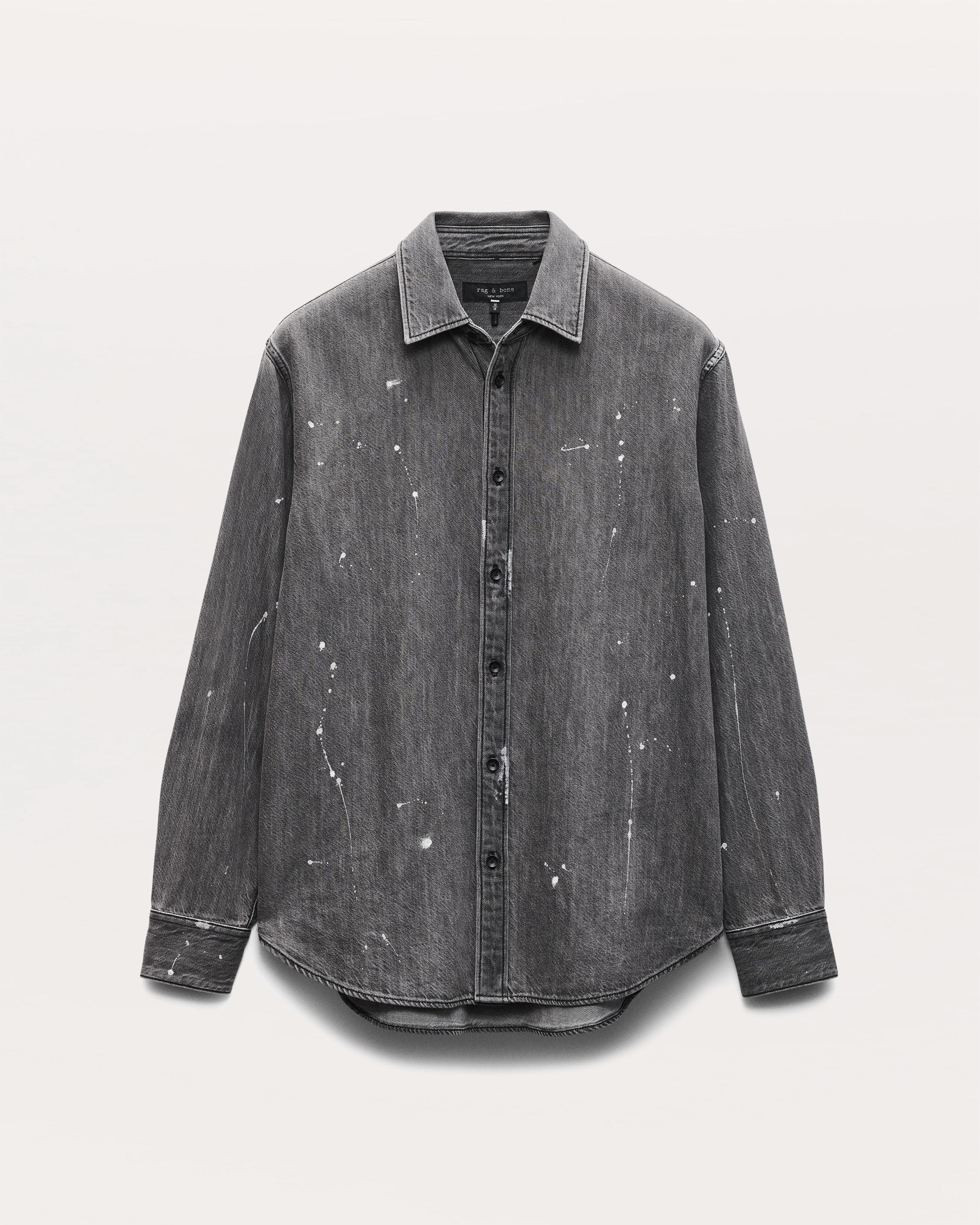 This button-up shirt is crafted for a classic fit from Featherweight, our soft, super-light denim that feels easy and effortless. It's finished with hand-painted splatter details that draw inspiration from the utilitarian clothes worn by 20th-century artists in the SoHos of New York and London. The artisanal process ensures no two garments are exactly alike, meaning yours will be unique to you. Size & Fit Classic fit Size Medium: Back length 30 3/4", chest 47", sleeve length 35 1/4" Model is 6'1" wearing size medium Features & Details 60% Cotton, 40% Lyocell Machine wash cold, gentle cycle, line dry Distressed black metal buttons Black grosgrain locker loop Hand-painted Imported Product ID: MED25SA016F5PC