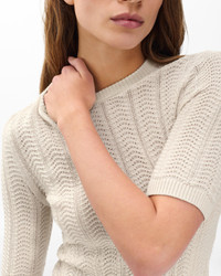 All about texture. This slim-fit sweater tee is knit entirely from soft merino wool with a feminine mix of wavy and slightly open-knit stitches. A machine-washable design makes it low-maintenance. Whether worn alone or as a base layer, it brings depth to any outfit. Size & Fit • Slim fit • Fits true to size • Size Small: Body length 21.5", chest 29", sweep 27", sleeve length 9" • Model is 5'10" wearing size small Features & Details • 100% wool • Machine wash cold inside out & lay flat to dry • Imported Product ID: RG5625F6MMN