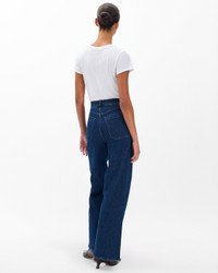 The Hadley. Our high-rise, figure-flattering jean with trouser details and a sculpted leg that gradually widens. Crafted from our Flexi denim that smooths, sculpts, and stretches for a perfect fit anytime, anywhere. In Lulu, a dark indigo wash. Size & Fit • High-rise • Full length • Gradually wide leg • Fits true to size • Size 26: 11.5" rise, 32" inseam, 22.5" leg opening • Model is 5'9" wearing size 24 Features & Details • 92% cotton, 6% polyester, 2% elastane • Flexi Denim in Lulu, a dark indigo wash • Machine wash cold inside out on delicate & lay flat to dry • Color may transfer • Zip fly with a signature dagger button closure • Signature rivets • Coin pocket, back patch pockets • Imported Product ID: RJ2025F1XLU