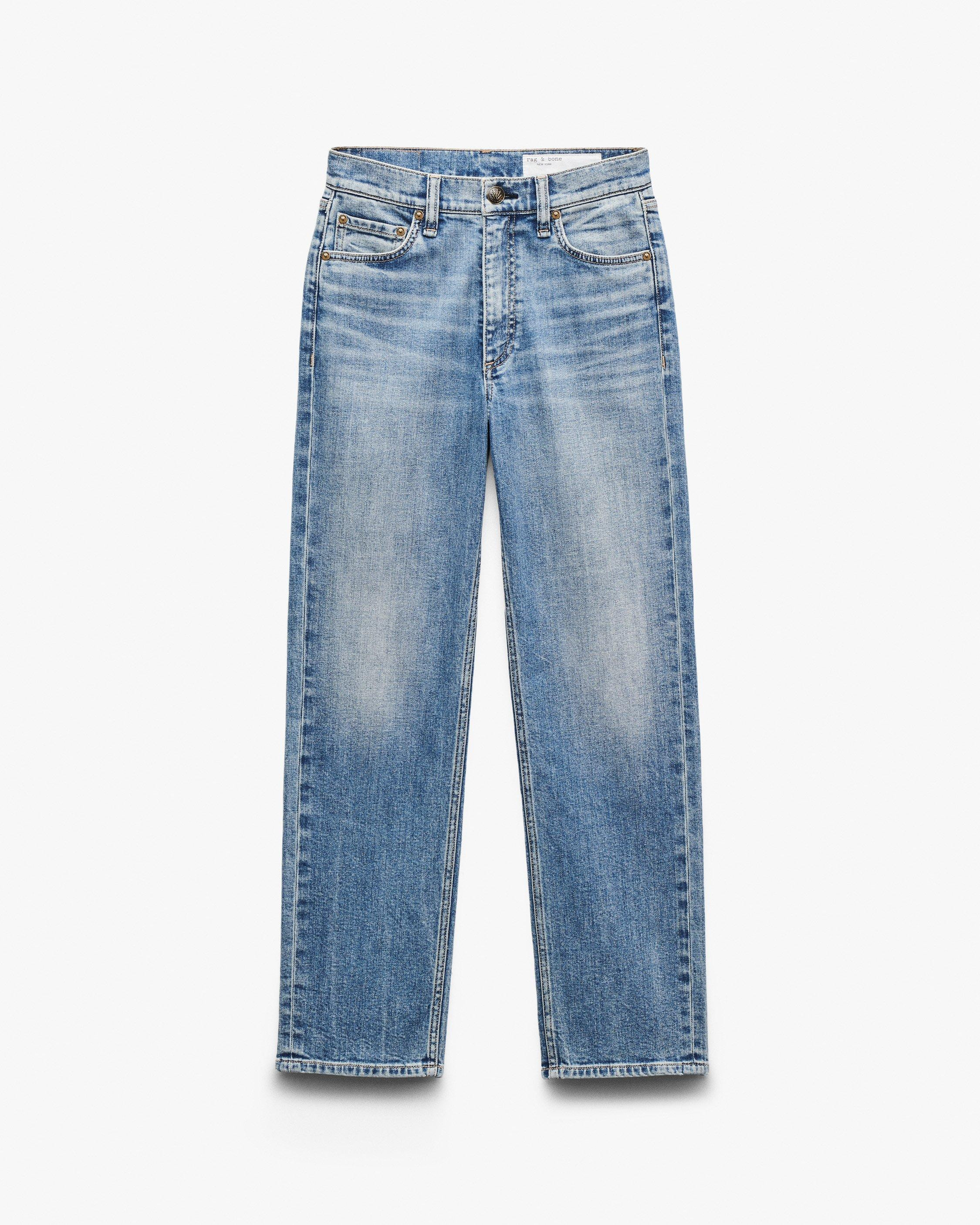 The Harlow. Impossibly cool straight-leg jeans that are mid-rise, fitted through the thighs, and cropped at the ankles. Crafted from our Vintage Stretch denim for a broken-in look & feel with a comfortable touch of stretch. In Orian, a light-medium indigo wash. Size & Fit • Mid-rise • Straight, ankle-length leg • Size 26: 11 " front rise, 28.5" inseam, 15.25" leg opening Features & Details • 99% cotton, 1% spandex • Vintage Stretch Denim • In Orian, a light-medium indigo wash • Machine wash cold inside out on delicate & lay flat to dry • Color may bleed • Signature dagger shank button at center front & metal rivets • Zip fly with a button closure • Five-pocket pant • Imported Product ID: RJ3625F1VOR