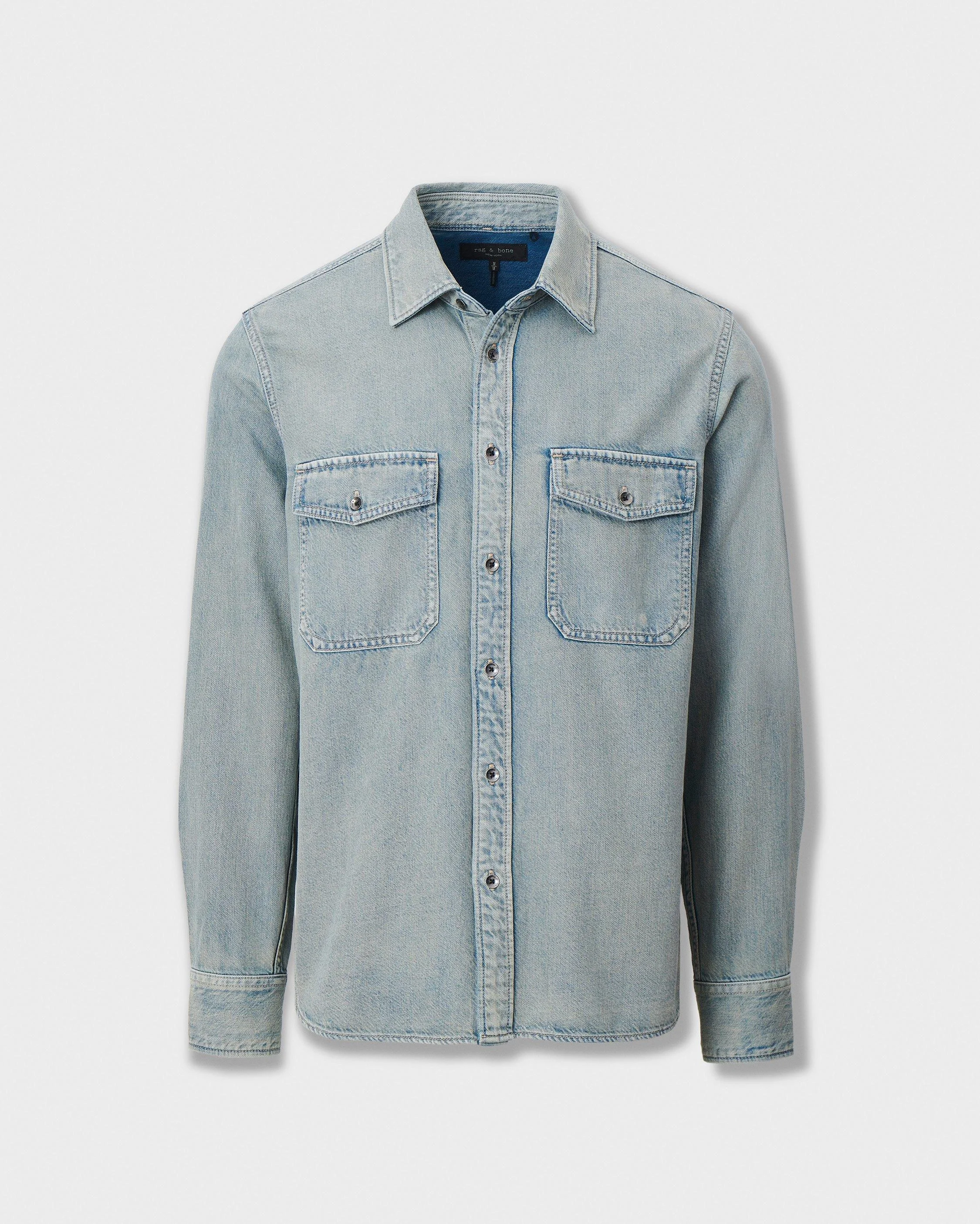 Steeped in heritage, made for the modern day. This casual button-up takes its cues from classic CPO jackets issued by the U.S. Navy in the 1930s, with considered details like utilitarian flap pockets. It's cut for a slightly relaxed fit from Ultra Featherweight, one of our softest and lightest denims that looks structured yet feels effortlessly comfortable in any climate. Wear it as a standalone shirt or layered over a tee with everything from jeans to polished chinos. In Infuse Saltaire, a custom-developed light indigo wash with a light brown overdye. Infuse is our innovative wash technique that delivers dimensional color through a multistep overdyeing and finishing process. Size & Fit • Relaxed fit • Fits true to size • Size Medium: Body length 30.5", chest 45.5", sweep 45", sleeve length 35.25" • Model is 6'2" wearing size medium Features & Details • 60% cotton, 40% lyocell • Ultra Featherweight in Infuse Saltaire, a custom-developed light indigo wash with a light brown overdye • Button plackett • Gunmetal buttons • Two chest buttoned flap pockets • Machine wash cold & tumble dry low • Color may transfer • Imported Product ID: RX2326SSFST
