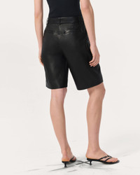 Elevated ease. Crafted from buttery lamb leather, these mid-rise shorts are cut for a relaxed fit with a longer 10.25" inseam. They're fully lined and feature the clean finish of a hidden hook-and-bar closure. Pair with the matching Slade Leather Vest and heels for a luxe summer look, or take them in a more casual direction with a short-sleeve top and sandals. Size & Fit • Mid-rise • Relaxed fit • Fits true to size • Size 4: 11.5" front rise | 10.25" inseam | 23" leg opening • Model is 5'11" wearing size 2 Features & Details • 100% lamb leather • Zip fly with a hook-and-bar closure • Fully lined • Slanted front pockets and back welt pockets • Professional leather clean only • Imported Product ID: WAW25P9004LT04