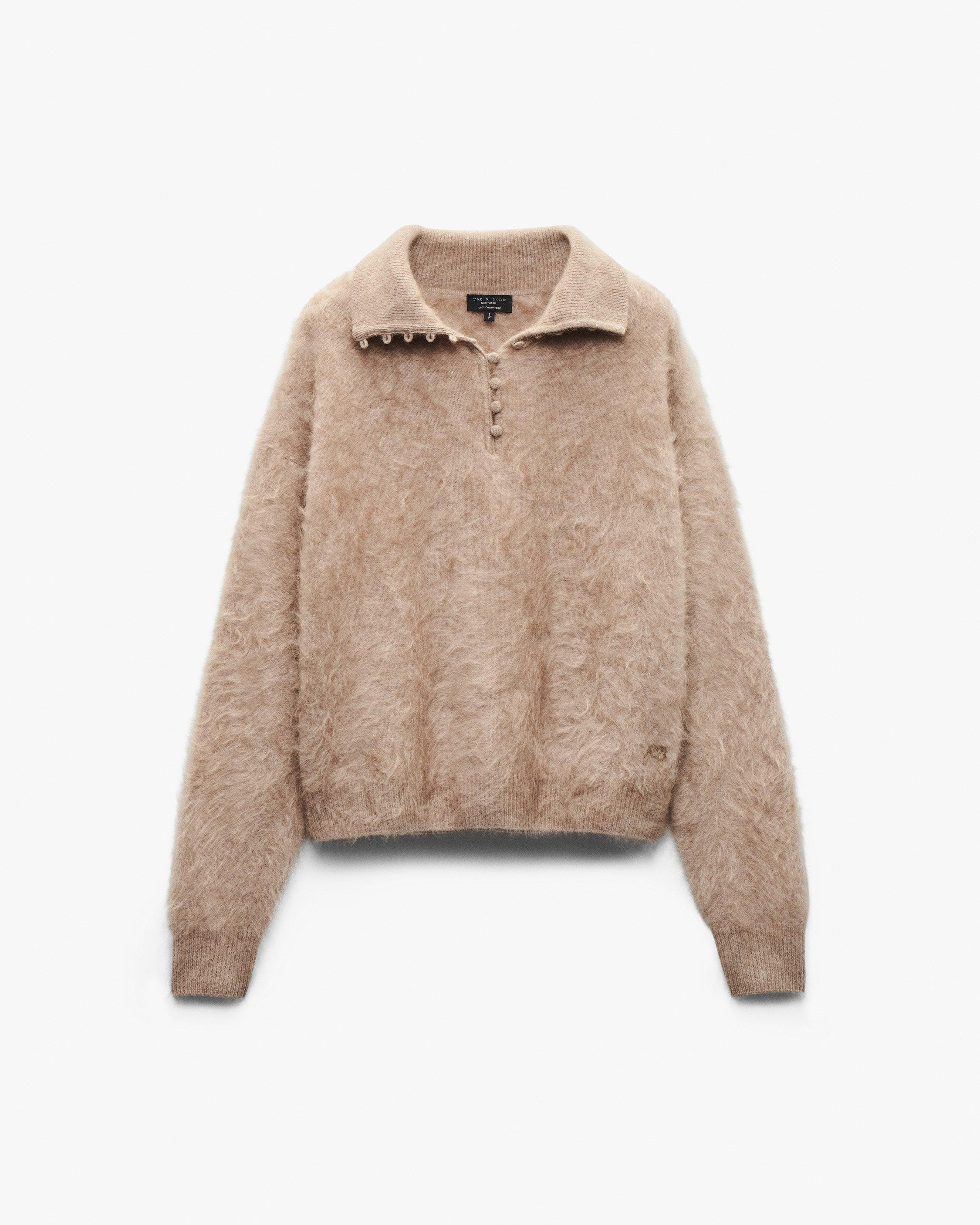 Dreamy textures. This cashmere cardigan is cut for a relaxed, oversized fit. Fabric-covered front buttons can be closed to create a mockneck. Falling to the hip, it features contrasting embroidered logo detail features to one side. Consider letting this style breathe between wears to ensure its delicate, ultra-soft yarns feel just as lofty every time. Size & Fit • Oversized fit • Fits large to size. Consider sizing down for a closer fit. • Size small: Body length 21", chest 45", sweep 39.5", sleeve length 19.5" • Model is 5'10" wearing size small Features & Details • 100% cashmere • Dry clean only • Fabric covered metal buttons at center front neck • Imported Product ID: RG6325F6MCA