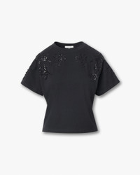 Subtle statement. Tonal hand-beaded and sequined floral motifs bloom across the top and sleeves of this boxy short-sleeve T-shirt cut from soft Peruvian cotton. Wear the glamorous style with denim during the day, or with a black satin skirt for festive parties at night. Size & Fit • Relaxed fit • Fits true to size • Size small: Body length 21.5", chest 39", sweep 36.5", sleeve length 4.5" • Model is 5'8" wearing size small Features & Details • 100% cotton • Unique beaded detail • Machine wash cold inside out on delicate & tumble dry low • Do not dry clean • Made in Peru Product ID: RE2M25HT3KW