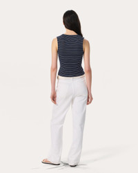 The polish of a vest meets the ease of a tank. This slim-fit striped top is knit from two different types of lightweight, super-soft stretch yarn for a sleek yet comfortable look wherever you wear it. It fastens up the front with tonal covered buttons. Size & Fit • Slim fit • Fits true to size • Size Small: Body length 20", chest 14.75", sweep 30" • Model is 5'11" wearing size small Features & Details • 48% rayon, 48% polyester, 4% spandex • Machine wash cold on delicate & tumble dry low or dry clean • Self-covered buttons • Button closure • Imported Product ID: WCC24P7021C721