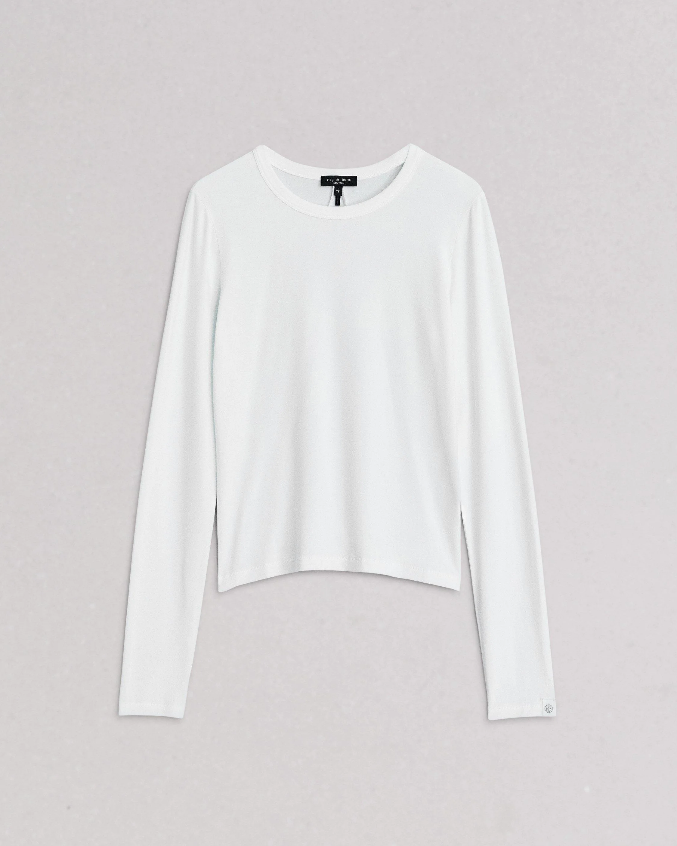 Meet your new favorite tee. A fitted long-sleeve T-shirt made from our silky-soft fabric that's cool to the touch and knit with a bit of stretch. V-stitch seam detailing at the back completes its signature look. Perfect for wearing on its own, or layering with anything. Size & Fit • Slim fit • Size Small: Center back length 21.25", chest 30", sweep 31", sleeve length 32.25" • Model is 5'9" wearing a size small Features & Details • 97% modal, 3% spandex • Machine wash, lay flat to dry, cool iron if needed • Signature railroad stitch detailing all over • Imported Product ID: RE0A25FT1GW