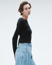 Timeless. Authentic. Iconic. One of the building blocks of a perfect wardrobe. This cropped and fitted slim long sleeve tee is woven in a Lyocell blend for a distinctly silky feel that makes this the perfect layering piece. Style with virtually anything in your closet. Size & Fit Slim fit Size Small: Center back length 21 1/4", chest 30", sweep 31", sleeve length 32 1/4" Model is 5'9" wearing a size small Features & Details 95% Modal, 5% Spandex Machine wash cold with like colors gentle cycle, do not bleach, lay flat to dry, cool iron if needed Signature railroad stitch detailing all over Made in China Product ID: WAC23HT040NH40