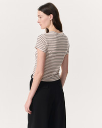 Meet your new favorite short-sleeve T-shirt. Cut for a slim, cropped fit from our beloved silky-soft fabric that's cool to the touch with a bit of stretch, this take on a baby tee will become an instant staple in your wardrobe. Horizontal stripes comingle with its vertical ribbed knit to create both visual and textural dimension. Size & Fit Slim cropped tee Size Small: Back length 20", chest 29 1/2", sweep 39", sleeve length 6 1/4" Model is 5'10.5 wearing size small Features & Details 97% Modal, 3% Spandex Machine wash cold, gentle cycle, do not bleach, tumble dry low, low Iron if needed or dry clean rb tab at hem Imported Product ID: WAC25ST031L931