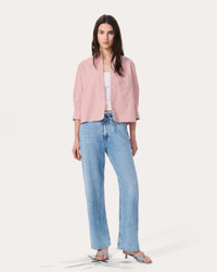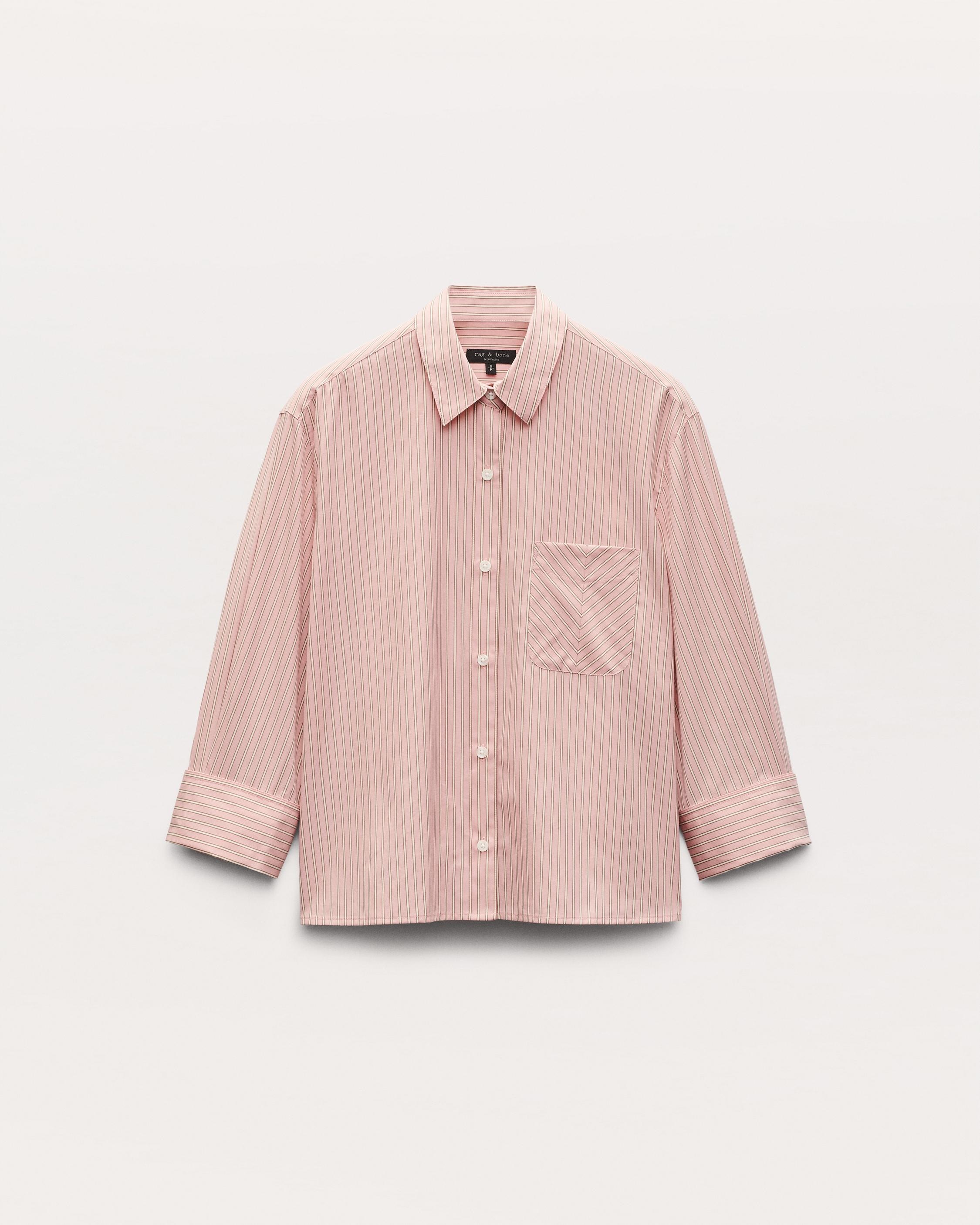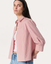 A fresh take on the striped button-up shirt. Tailored for a relaxed, slightly cropped fit from crisp cotton poplin. Finished with a chevron front pocket and gathered sleeves cuffed at the perfect length for a chic, flowy look. It's a new wardrobe staple that pairs well with anything�especially denim. Size & Fit • Relaxed fit • Fits true to size • Size Small: back length 23.25" | chest 43.5" | sweep 42.5" | sleeve length 23" • Model is 5'11" wearing size small Features & Details • 100% cotton • Faux horn buttons at center front and sleeve cuffs • Unlined • Button closure • Machine wash warm & tumble dry medium • Imported Product ID: WAW25PA0207620