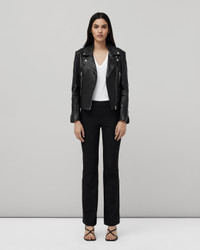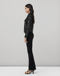 The perfect motorcycle jacket, crafted from hand waxed lamb leather with signature zipper and snap details. Size & Fit Slim fit, signature moto jacket Center back length from neck seam 20 1/2", chest 36 3/4", sleeve length 32" Model is 5'9.5" wearing a size small Features & Details Lamb leather with handwax 100% Lamb Leather Professional leather clean only Front zipper closure Zipper pocket Imported Product ID: WAW19F4047LP41