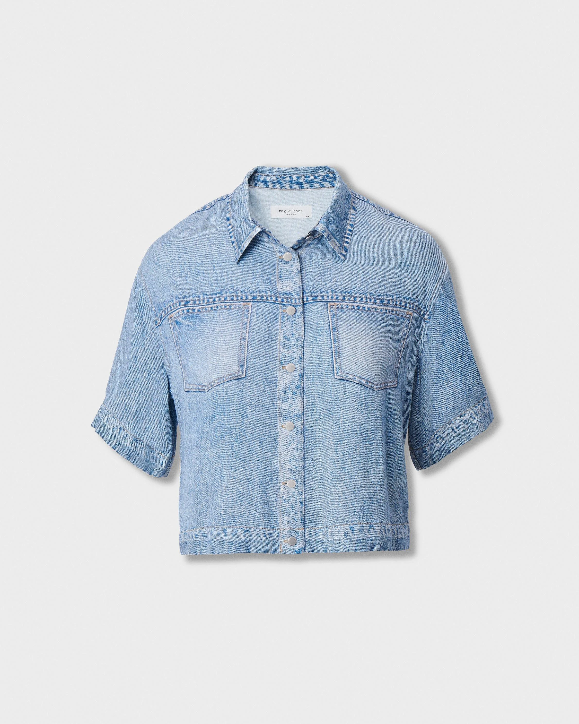 Whether you're getting to know (or already adore) Miramar, our revolutionary printing technique that makes any material look like denim, you'll love it in our all-new soft, fluid fabric. Part of our Miramar Slink collection, short-sleeve button-up is cut and sewn from an extra-drapey fabric that feels like loungewear and is printed on the outside to look like a denim shirt. The easygoing style further achieves its ultra-comfortable feel with the pockets and denim details digitally printed on the fabric. Pair with the Miramar Lounge Pants for a fresh take on double "denim." Size & Fit • Fits true to size • Size Small: Body length 19.5", chest 42", sweep 40", sleeve length 18.75" • Model is 5'9" wearing size small Features & Details • 100% viscose • Miramar Slink, a soft loungewear-like fabric with a trompe l'oeil denim print • Button-up front • Metal buttons • Machine wash cold inside out on delicate & lay flat to dry • Do not dry clean • Imported Product ID: RC6326SSMSL