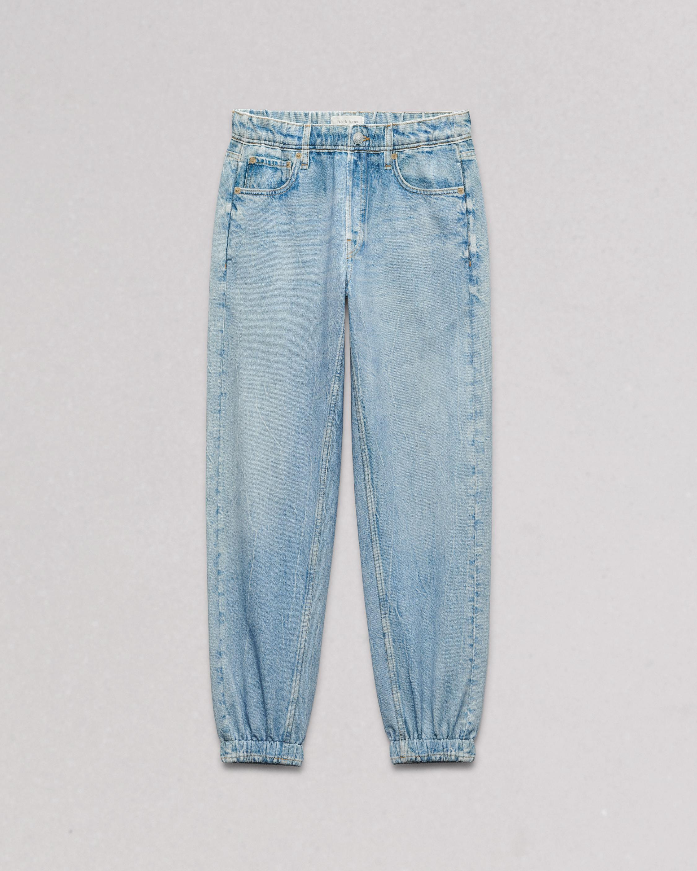 The Miramar Jogger. Crafted with a super-soft cotton terry and printed to look like your favorite high-rise denim jeans. Features side seam pockets and elastic at the waist and ankle. Really does look like denim. Really feels nothing like it. Size & Fit Size Small: 10 1/2" Rise, 28 1/2" Inseam, 10" Leg Opening Features & Details 100% Cotton High-stretch, light indigo print Machine wash cold. Turn garment inside out. Do not bleach. Lay flat to dry. Do not tumble dry Elastic waist and ankles Printed belt loops, printed zip button fly, printed rb embroidery, printed rivets Side seam pockets, printed five-pocket silhouette Printed back pockets Imported Product ID: WCW23F70008200