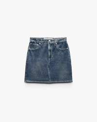 Whether you're getting to know (or already adore) Miramar, our revolutionary printing technique that makes any material look like denim, you'll love it in our bestselling ponte fabric. Part of our Miramar Refine Knit collection, this mid-rise mini skirt is cut and sewn from a soft stretch knit that's printed on the outside to look like a jean skirt. Featuring functional belt loops, front scoop pockets, and a zip fly with a buttoned closure, the unlined style further achieves its ultra-comfortable fit and feel with the back pockets and denim details digitally printed on the fabric. Size & Fit • High-rise, pull-on mini skirt • Fits true to size • Size 26: Waist 29.5", sweep 39.25", front length 16.75", back length 16.75" • Model is 5'9" wearing size 24 Features & Details • 72% rayon, 23% polyamide, 5% spandex • Machine wash cold inside out & tumble dry low • Zip fly with button at center front • Real belt loops • Imported Product ID: RC0625FSMPO