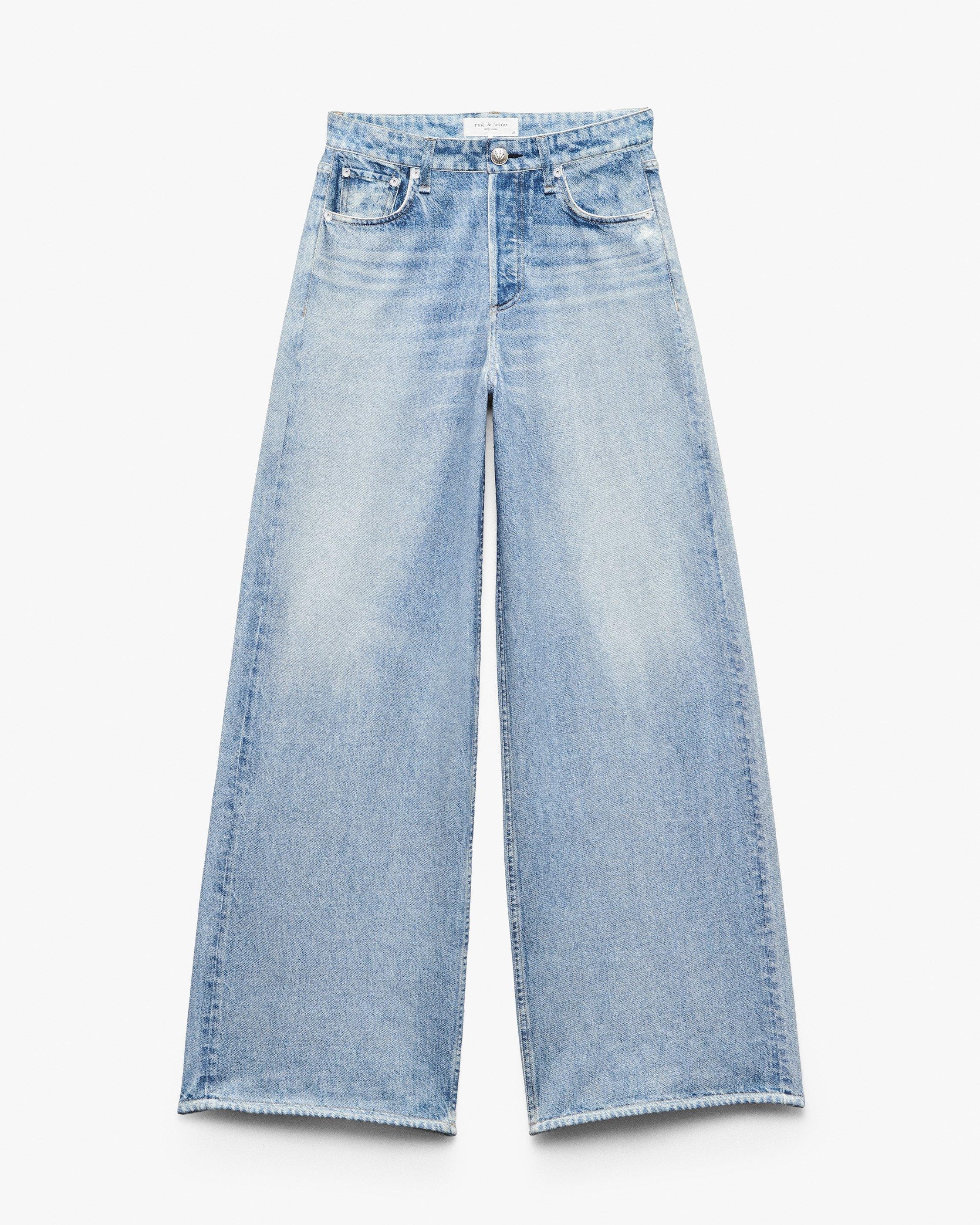 Miramar, our revolutionary printing technique, makes any material look like denim. These Sofie pants are cut and sewn from cotton terry cloth that's ultra-soft on the inside and printed on the outside to look like your favorite jeans. Featuring super-wide, full legs with flared hems, plus functional belt loops, front scoop pockets, a zip fly, and a button closure, the high-rise style further achieves its comfortable fit and feel with the back pockets and other denim details digitally printed on the fabric. Size & Fit • High-rise, full-length wide leg • Fits true to size • Size 26: 12.25" front rise, 34" inseam, 25.5" leg opening Features & Details • 100% cotton • Machine wash cold inside out & lay flat to dry • Trompe l'oeil denim print on terry fabric • Digitally printed rivets and rb embroidery? • Signature metal dagger button, zip fly • Functional belt loops • Zip fly with a button closure • Functional front pockets • Digitally printed back pockets and coin pocket • Imported Product ID: RC1225F7MTE