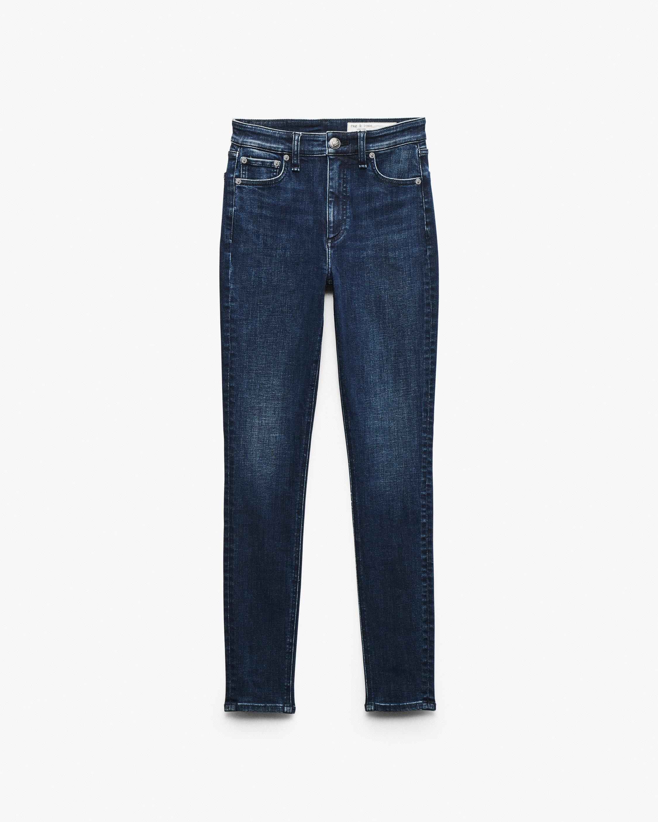 The Nina. True high-rise skinny jeans. Crafted from our Flexi denim that smooths, sculpts, and stretches for a perfect fit anytime, anywhere. In Lulu, a dark indigo wash. Size & Fit • High-rise • Skinny fit, full-length • Fits true to size • Size 26: 10.5" rise, 30" inseam, 10" leg opening • Model is 5'10" wearing size 24 Features & Details • 92% cotton, 6% polyester, 2% spandex • Flexi Denim in Lulu, a dark indigo wash • Machine wash cold inside out on delicate & lay flat to dry • Color may bleed • Signature dagger buttons & branded washer rivets • Zip fly with button closure • Five-pocket silhouette • Imported Product ID: RJ3325F1XLU