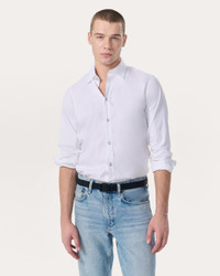 Perfectly tailored. Cut close to the body, Patrick is our slim-fit shirt that looks just as sleek solo as it does layered under a suit jacket. This refined version is crafted from a subtly textured poplin with a touch of stretch for total comfort. Size & Fit • Slim fit • Fits true to size • Size Medium: back length 31.75" | chest 43.5" | sleeve length 35.25" • Model is 6'3" wearing size medium Features & Details • 73% cotton, 24% polyamide, 3% elastane • Distressed buttons at center front and cuff, bone button at the sleeve placket • Button closure • Machine wash cold & lay flat to dry • Imported Product ID: MBW25PA023CGML